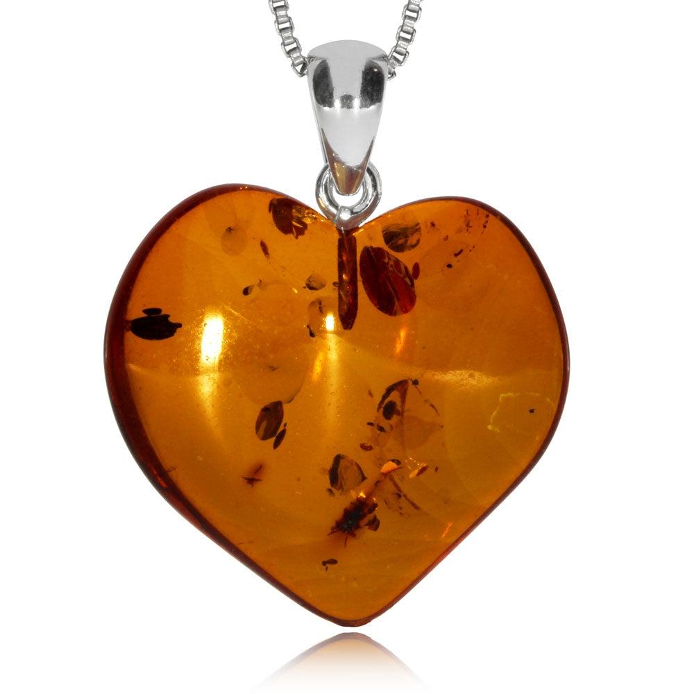 Jantarový přívěsek ve tvaru srdce se stříbrem