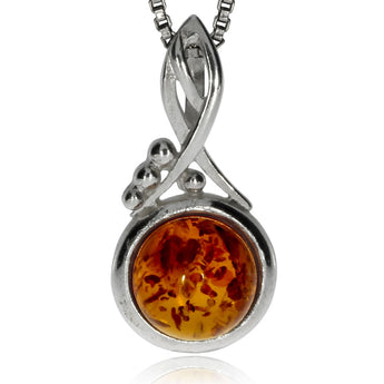 Stříbrný přívěsek s jantarem kulatého tvaru