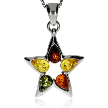 Stříbrný přívěsek s jantarem tří barev, hvězda