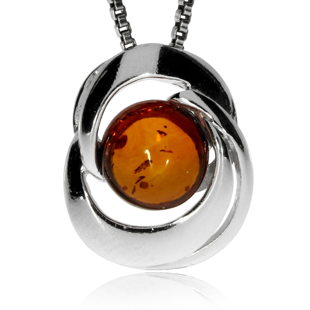 Krásný dámský přívěsek s jantarovou ozdobou kulatého tvaru bude skvělým doplňkem obzvlášť k dalším jantarovým šperkům. Přívěsek je vyrobený z rhodiovaného stříbra, které je vyhlášené svým leskem a dobrou odolností.