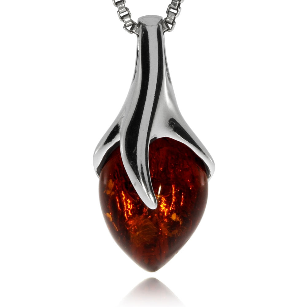 Krásně zpracovaný šperk v sobě spojuje jednoduchost a elegantní zpracování. Dominantou designu je malý kousek jantaru, prastarého organického materiálu s jedinečnou strukturou a zlatavou barvou. Jantar je zasazený do kovového lůžka s jemnou zdobnou linií. Přívěsek je vyrobený ze stříbra s odolným a pěkně lesklým rhodiovaným povrchem.