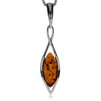 Stříbrný přívěsek s jantarem ve špičaté kovové linii