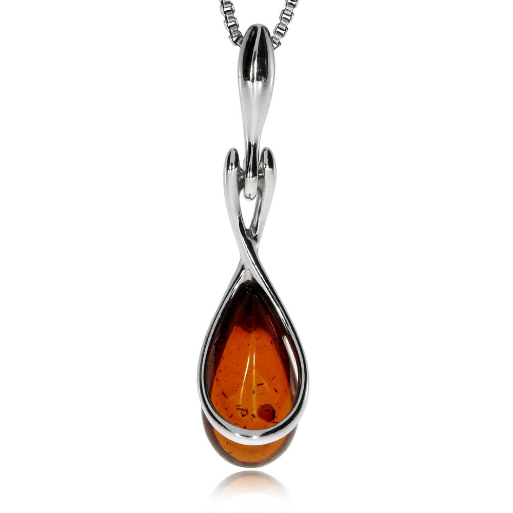 Půvabný dámský stříbrný přívěsek nese zlatavou jantarovou ozdobu ve tvaru kapky. Tu potom doplňuje jemná stříbrná linie, která se vine nad ozdobou. Jantar je oblíbený organický materiál, který se ve šperkařství používá už od dávných dob. Jeho jedinečná struktura skvěle vyniká ve stříbrném povrchu.