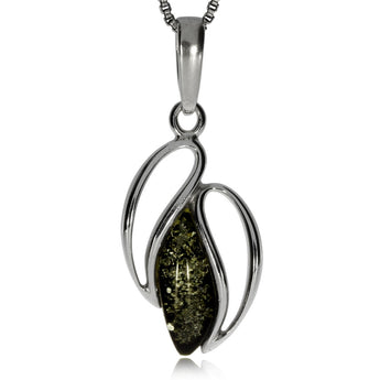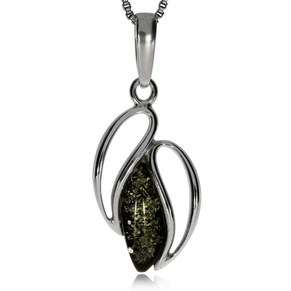 Krásně zpracovaný dámský přívěsek, který v sobě spojuje nápaditý motiv a jednoduchou eleganci. Přívěsek je vyrobený ze zářivého a kvalitního leštěného stříbra a nese zasazený kousek zeleného jantaru.