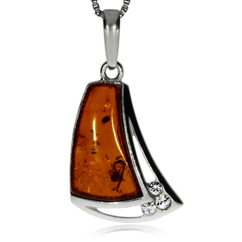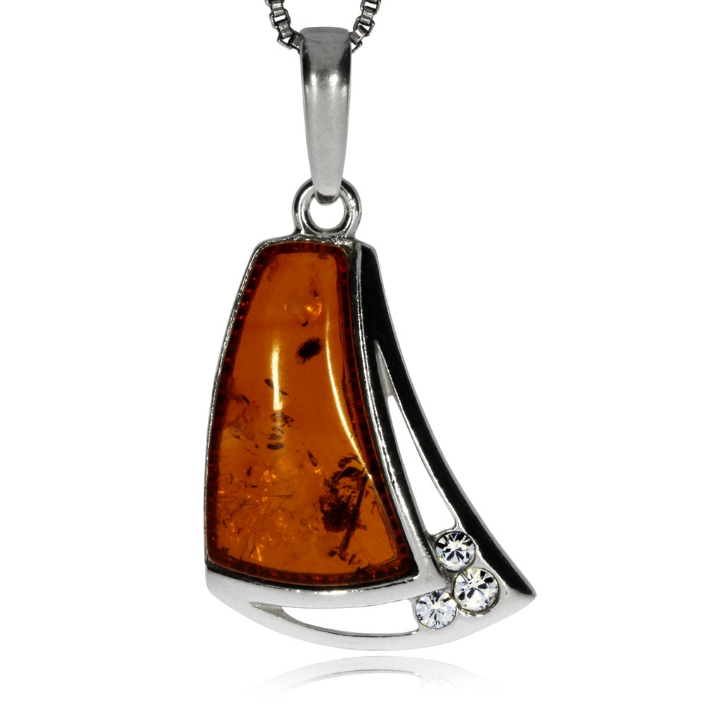Stříbrný přívěsek s jantarem a křišťálem ve špičce