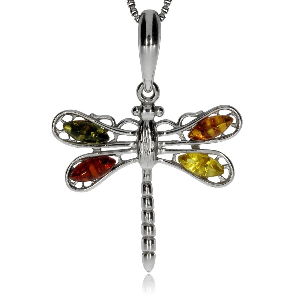 Stříbrný přívěsek s různě barevnými jantary - Vážka