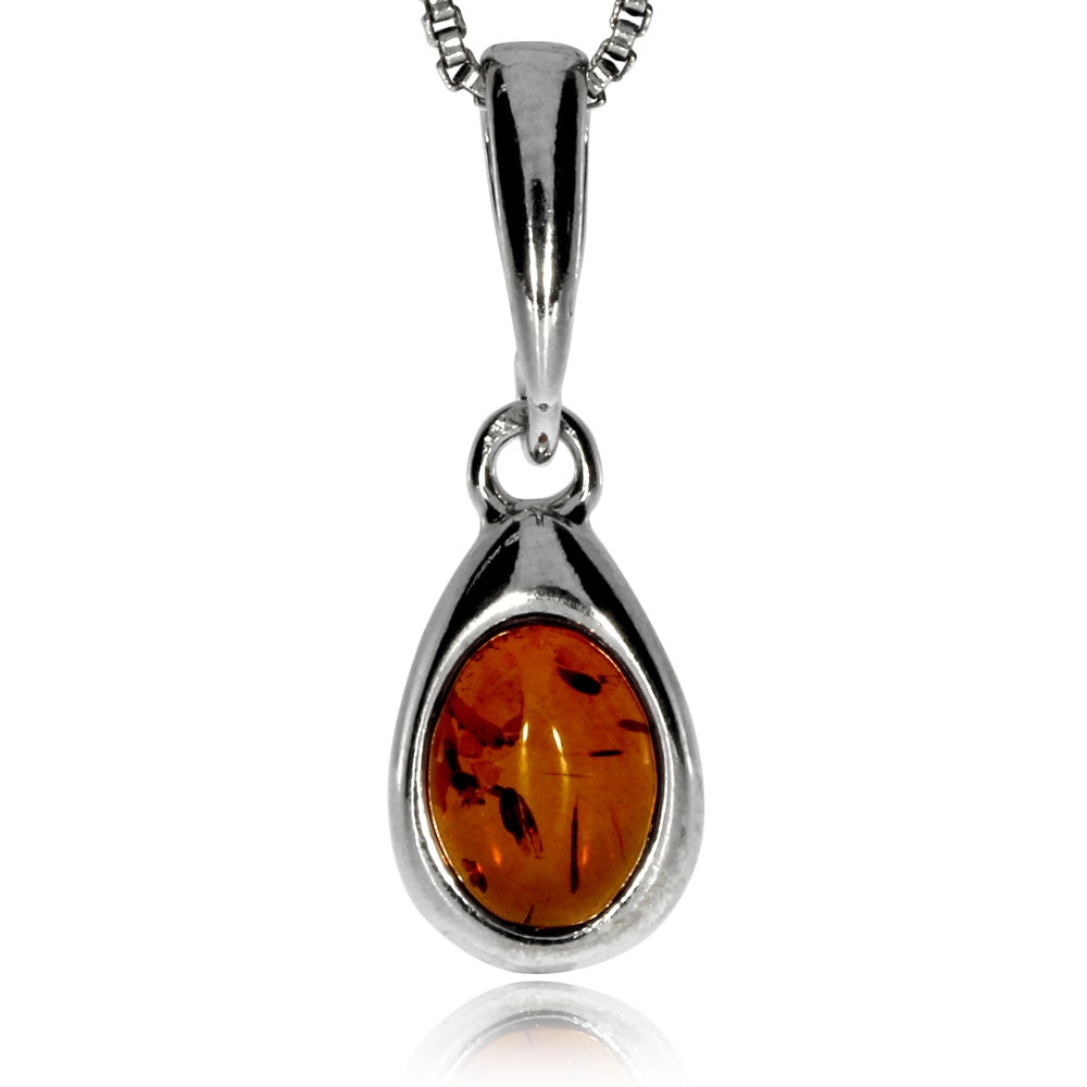 Stříbrný přívěsek zdobený jantarem - Kámen ve tvaru oválu