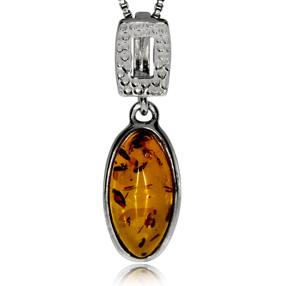 Stříbrný přívěsek zdobený jantarem - Kámen ve tvaru oválu se zdobeným ouškem