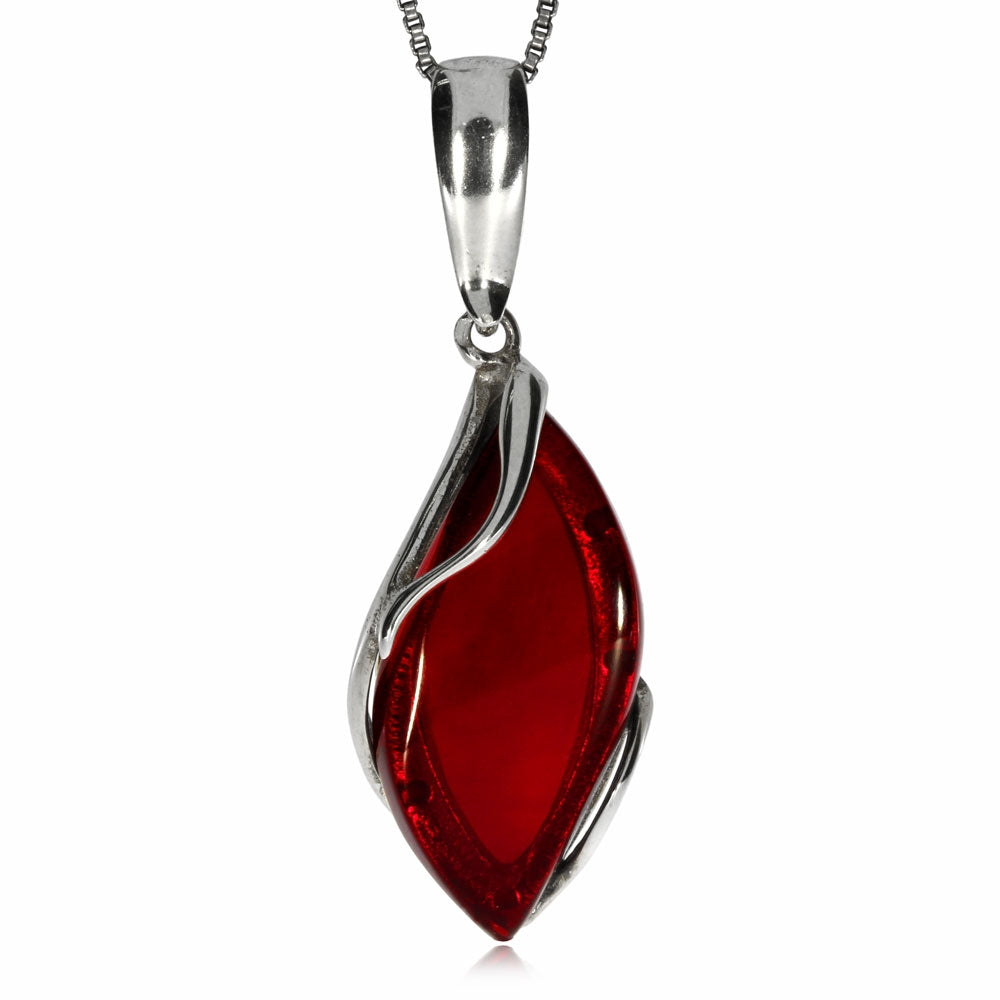 Stříbrný přívěsek s jantarem - Kapka ve zdobném lůžku