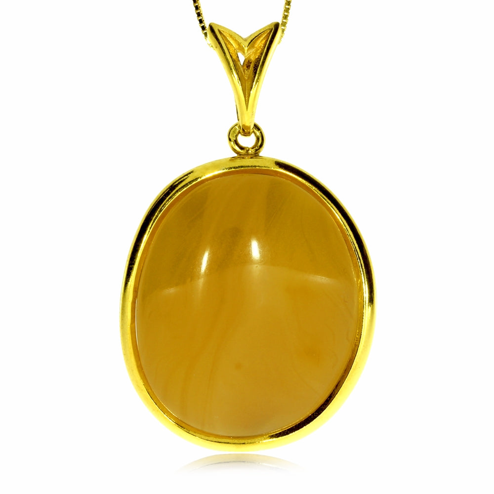 Stříbrný přívěsek s jantarem zlacený na stříbře - Mléčný ovál