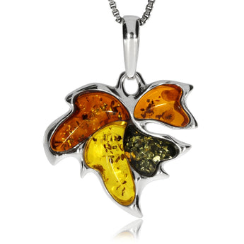 Stříbrný přívěsek ve tvaru lístku s jantarem čtyř barev
