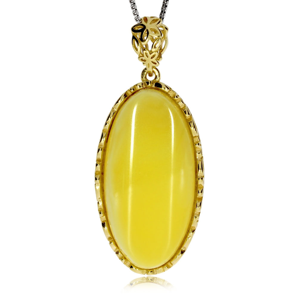 Stříbrný přívěsek s jantarem v jemné obrubě a úchytem s květy