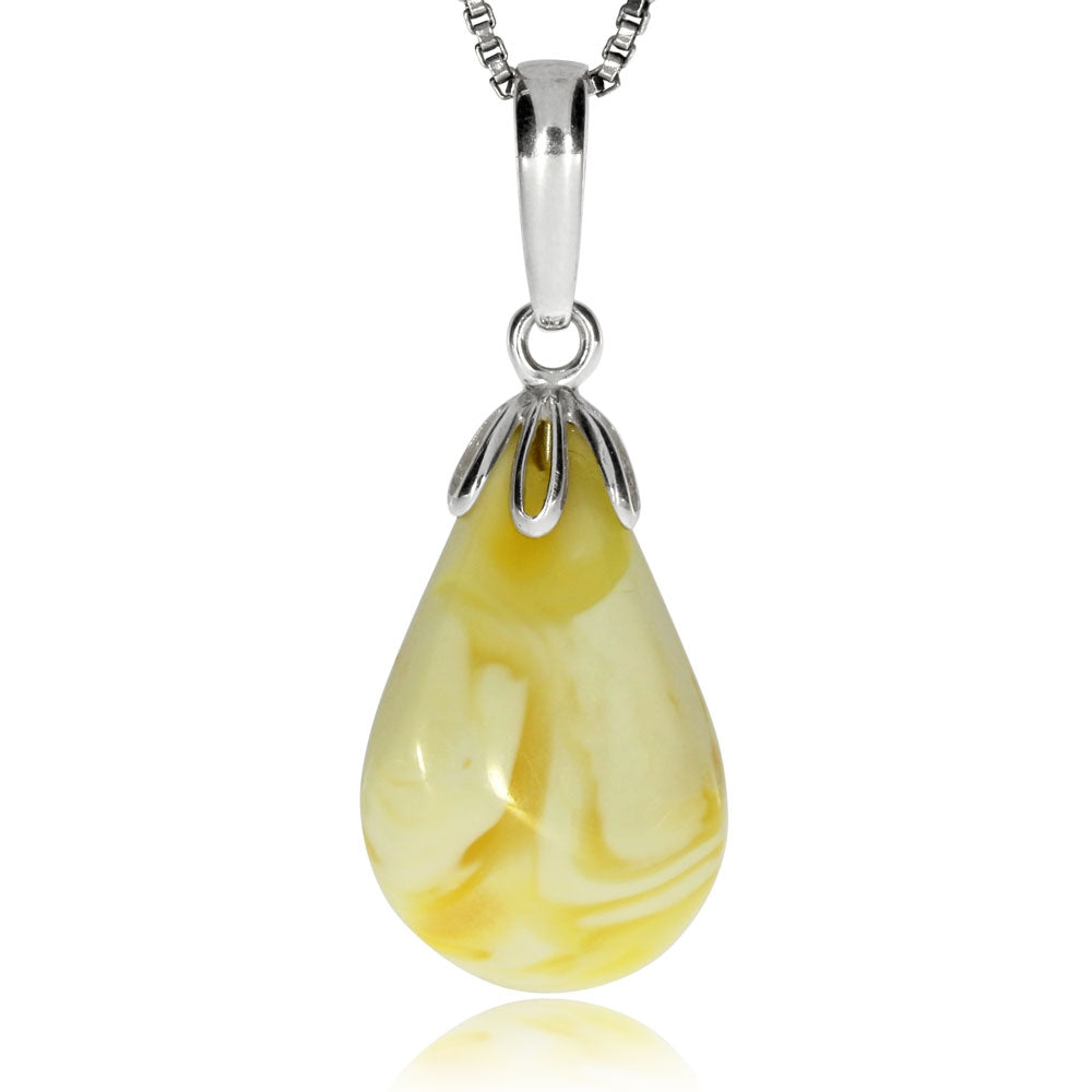 Stříbrný přívěsek s mléčným jantarem ve tvaru kapky