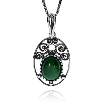 Stříbrný přívěsek s malachitem - Jemně zdobený ovál