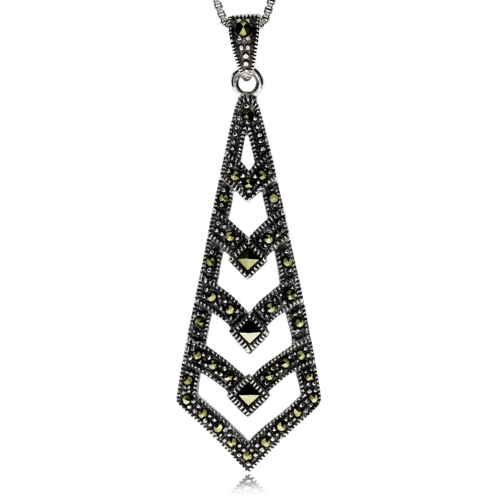 Působivě třpytivý dámský přívěsek, který se dobře hodí i pro slavnostní příležitosti, bude skvostnou ozdobou pro elegantní ženy a dívky. Přívěsek je vyrobený ze stříbra se starostříbrnou úpravou, ve které skvěle vyniká třpyt přírodních polodrahokamů markazitů.