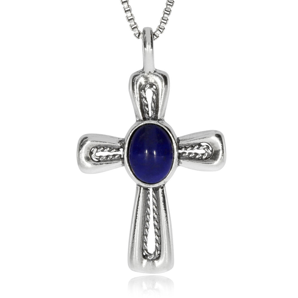 Stříbrný přívěsek - Křížek s lapisem lazuli