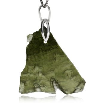 Půvabný přírodní přívěsek, který potěší každou ženu a dívku s láskou ke všemu všedně nevšednímu. Přívěsek nese na části z leštěného stříbra nepravidelně tvarovaný zelený vltavín.