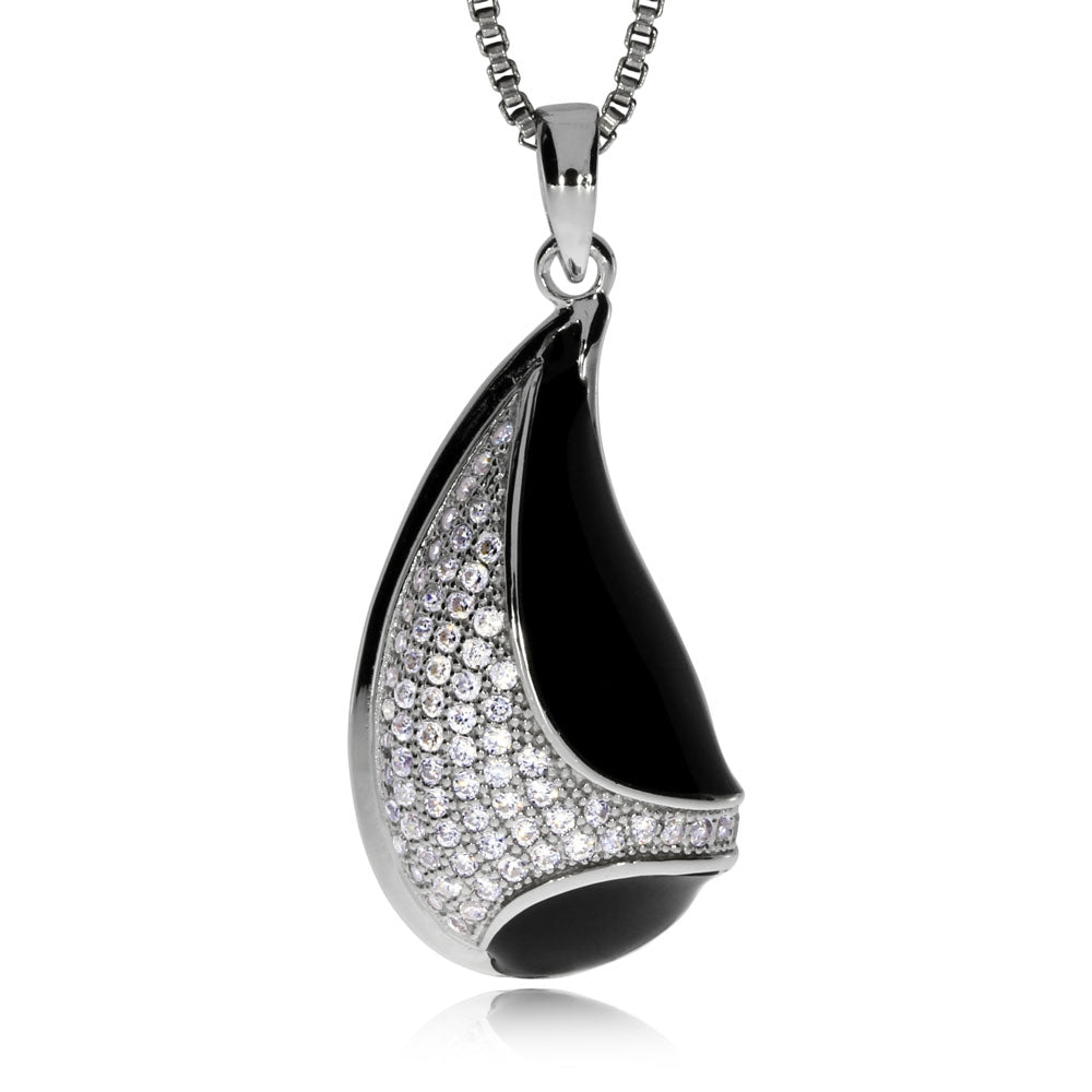 Stříbrný přívěsek se zirkony (cubic zirconia)- Třpytivá kapka s černou