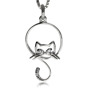 Stříbrný přívěsek se zirkony (cubic zirconia) - Kočka
