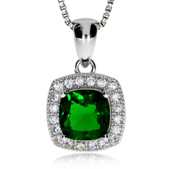 Stříbrný přívěsek se zirkony (kubická zirkonie) - Zelený čtverec
