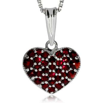 Stříbrný přívěsek - Srdíčko poseté českým granátem, Granát Turnov