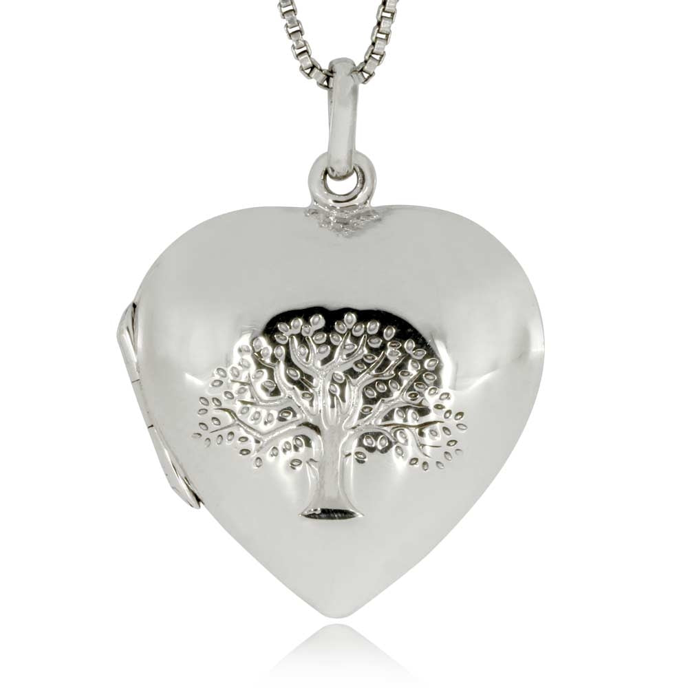 Stříbrný přívěsek pro ženy potěší možností vložit do něj fotografii milé osoby. Šperk ve tvaru srdíčka se otvírá a lze do něj vložit drobný předmět nebo fotografii. Přívěsek je vyroben z leštěného stříbra a jeho přední strana je ozdobena motivem stromu života. Očko přívěsku je kulaté a dostatečně velké, aby jím prošel i silnější řetízek.
