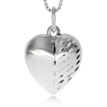 Pěkně zpracovaný dámský přívěsek, který upoutá pozornost svou elegancí a velice nápaditým zpracováním. Jednu jeho polovinu totiž zdobí jemné výbrusy, které se pěkně lesknou. Přívěsek ve tvaru srdce je vyrobený ze stříbra s vrstvou odolného a zářivého rhodia, ve kterém design ještě lépe vyniká.