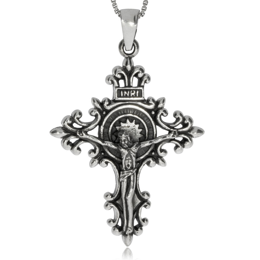 Stříbrný přívěsek - Kříž zakončený liliemi, s Ježíšem a nápisem INRI