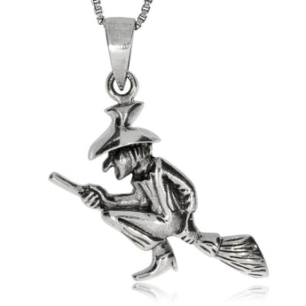 Stříbrný přívěsek - Čarodejka na koštěti v klobouku