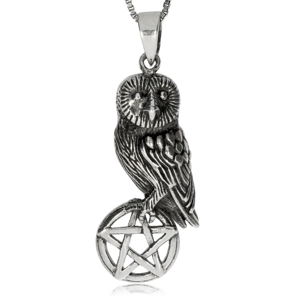 Stříbrný přívěsek se sovou na pentagramu v kruhu