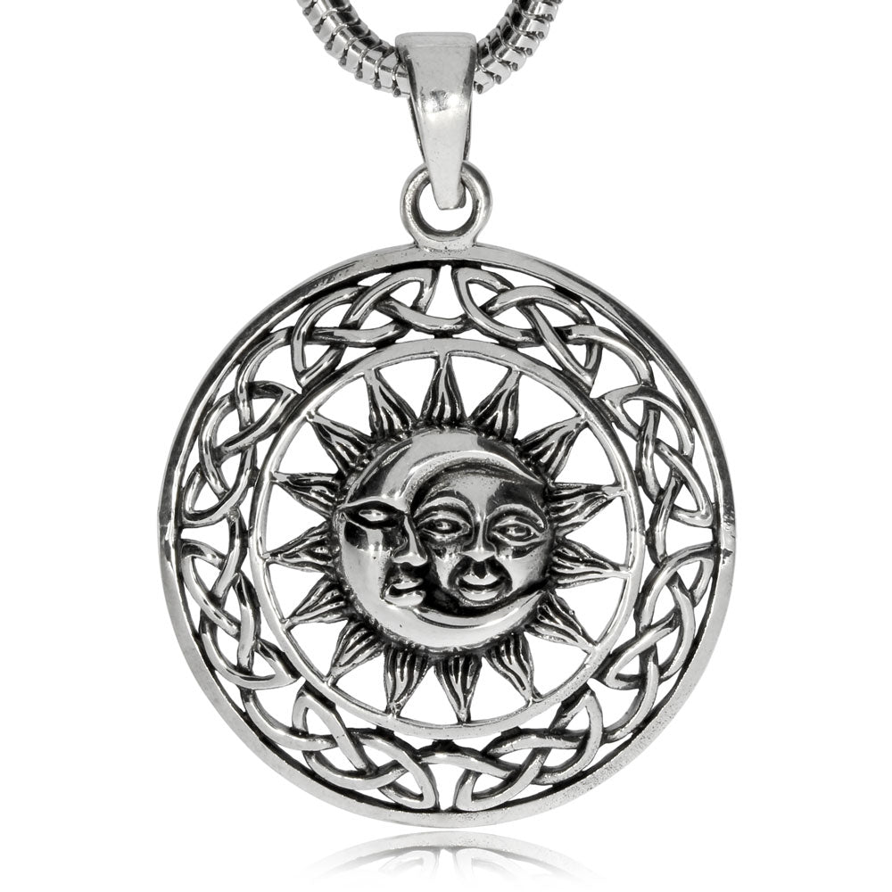Stříbrný přívěsek - Slunce s Lunou v kruhu