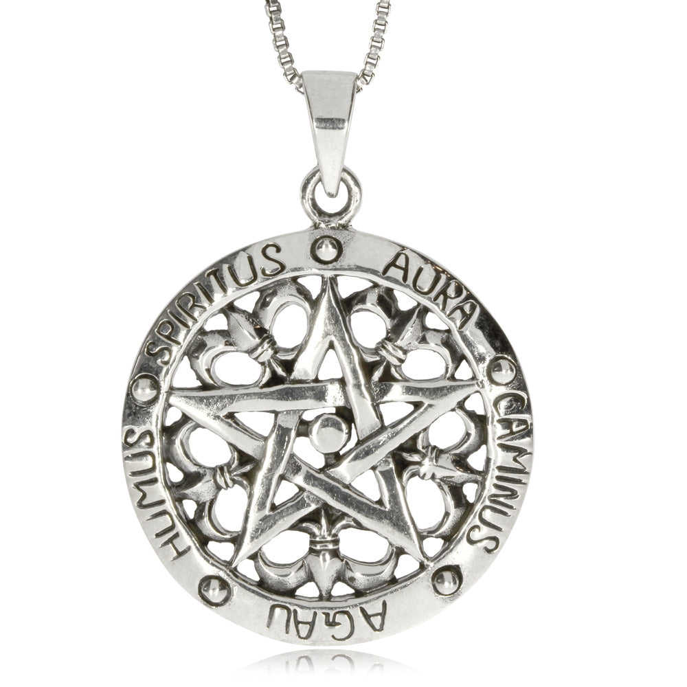 Stříbrný přívěsek - Pentagram v kruhu s nápisy