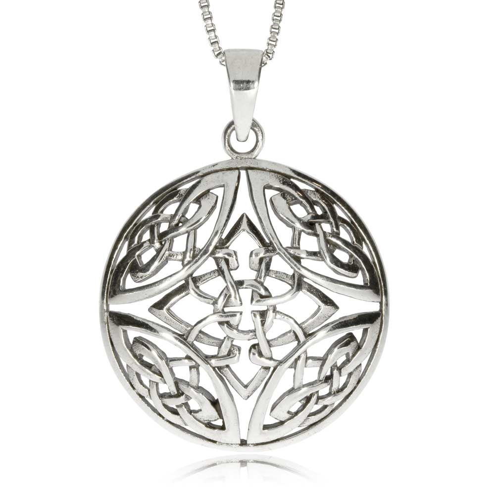 Stříbrný přívěsek s keltkými motivy. Kulatý přívěsek je vhodný pro žena a muže s zájmem o nekonečné uzly keltské symboliky. Tento šperk je vhodný pro každodenní užívání a bude se velmi dobře vyjímat na delším stříbrném řetízku nebo u mužů na kaučukovém návleku.