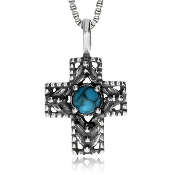 Stříbrný přívěsek - Ozdobný křížek s tyrkysovým kamínkem