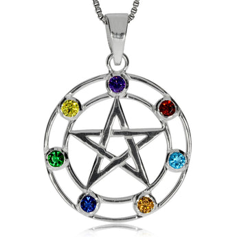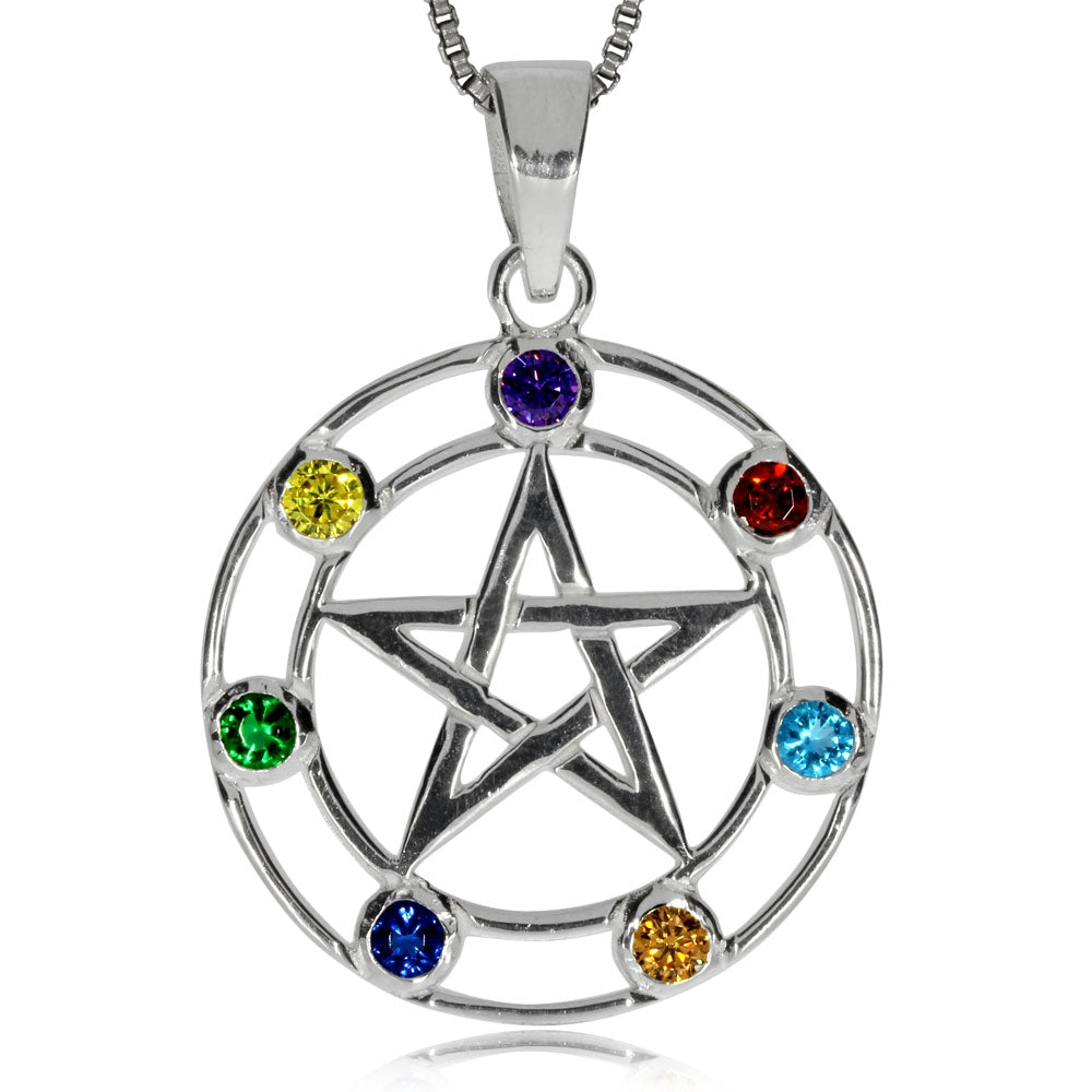 Stříbrný přívěsek - Pentagram ve dvojitém kruhu