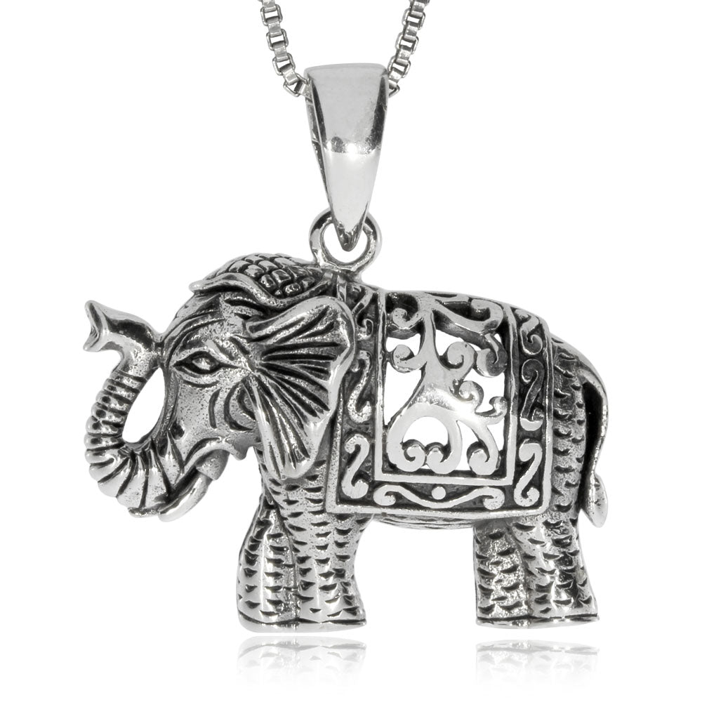 Půvabný přívěsek slona je vyroben ze stříbra o ryzosti 925/1000 a jeho povrch je pokryt starostříbrnou patiou. Dobrácký slon se zdviženým chobotem má přes hřbet přehozenou ozdobnou deku s drobným reliéfem. Vrásky na kůži vynikají právě díky starostříbrné patině a figurka slona působí velmi věrohodně. Pro milovníky a sběratele slonů by to mohl být zajímavý přírůstek do sbírky.