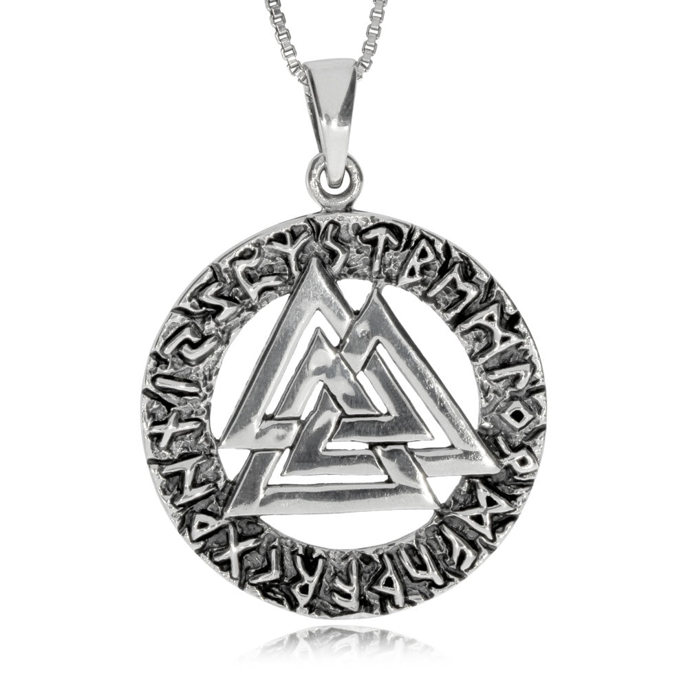 Stříbrný přívěsek - Valknut v kruhu s runami