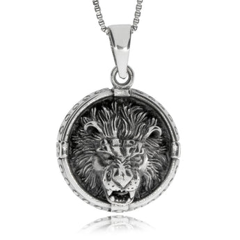 Stříbrný přívěsek - Hlava lva v kulaté obrubě