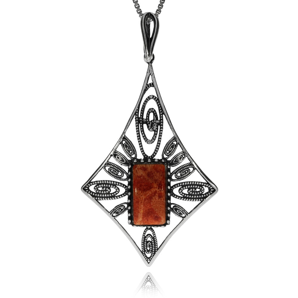 Stříbrný přívěsek s korálem - Starostříbrný kosočtverec