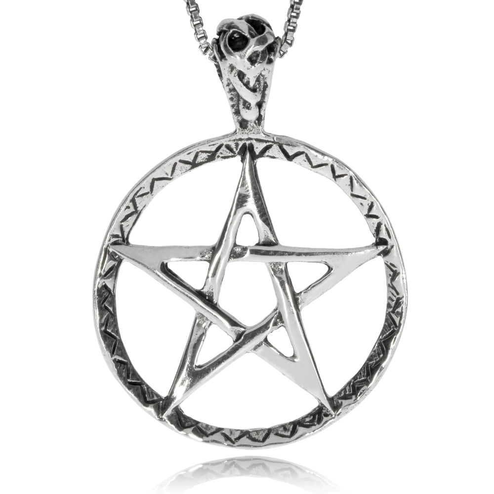 Pěkně zpracovaný přívěsek s významným magickým symbolem pentagramu v kruhu. Tato pětícípá hvězda byla v minulosti používaná pro ochranu před zlými duchy a nadpřirozenými silami. Přívěsek je vyrobený ve starostříbrné povrchové úpravě.