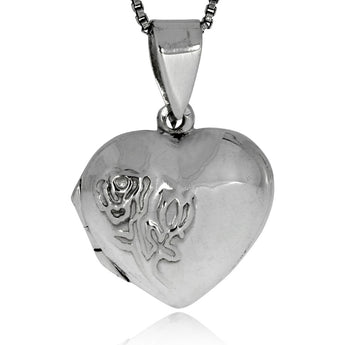 Krásně zpracovaný a elegantní přívěsek, který zaujme svým neotřelým půvabem a jemností. Otevírací medailonek ve tvaru srdce je vyrobený z leštěného stříbra a na povrchu ho zdobí jemný vzor růže. Hodí se i pro každodenní nošení.
