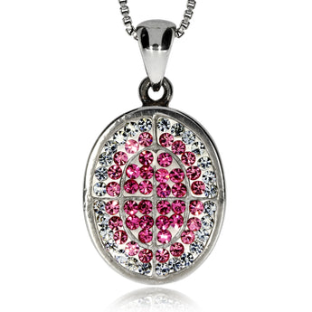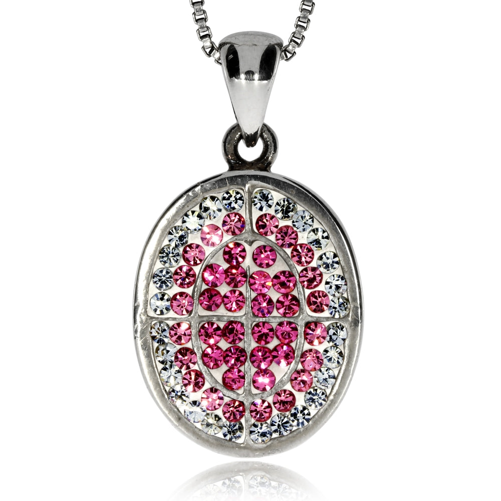 Stříbrný přívěsek s růžovými a čirými křišťály, ovál