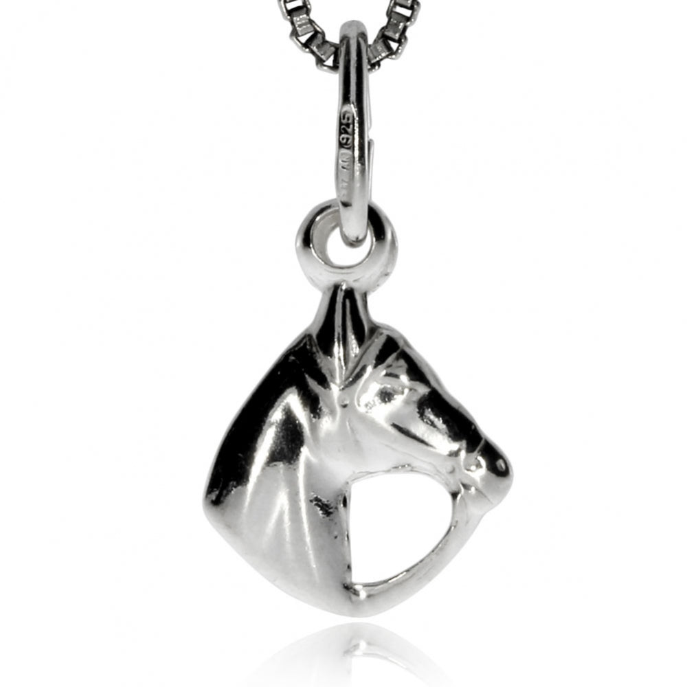 Pěkně zpracovaný stříbrný přívěsek vyobrazuje osedlanou koňskou hlavu. Koně jsou velice oblíbená a majestátní zvířata, která se nejčastěji používají jako symbol naděje. Přívěsek je do detailů dobře propracovaný a vykreslený a nejlépe se bude kombinovat s jemným řetízkem.