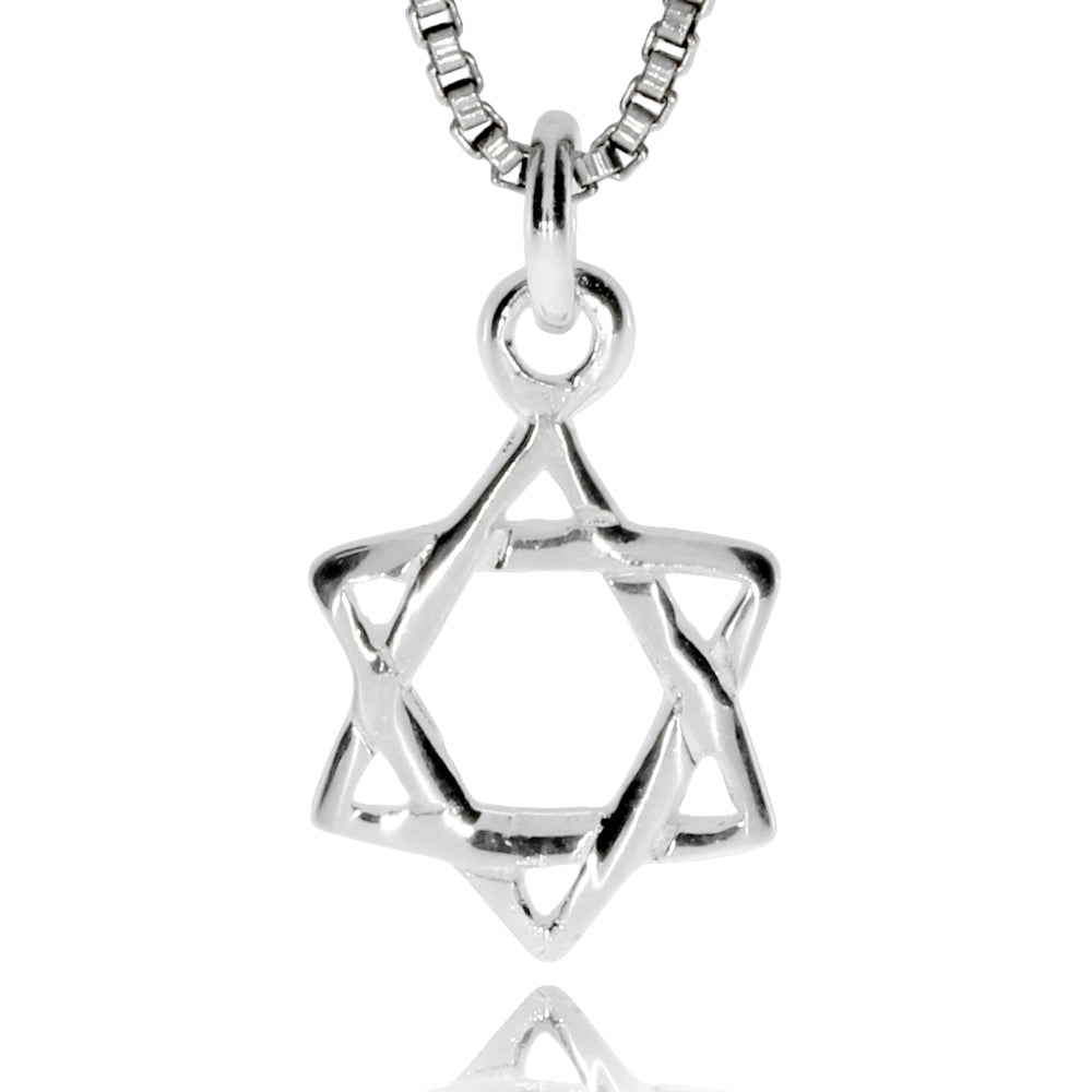 Jednoduše a originálně zpracovaný přívěsek s motivem hexagramu, někdy také nazývaného Šalamounovou pečetí. Tento mocný symbol měl králi Šalamounovi pomoci překonávat démony, chránit před nezdarem a pomoci při studiu magie. Vyrobený je z leštěného stříbra.