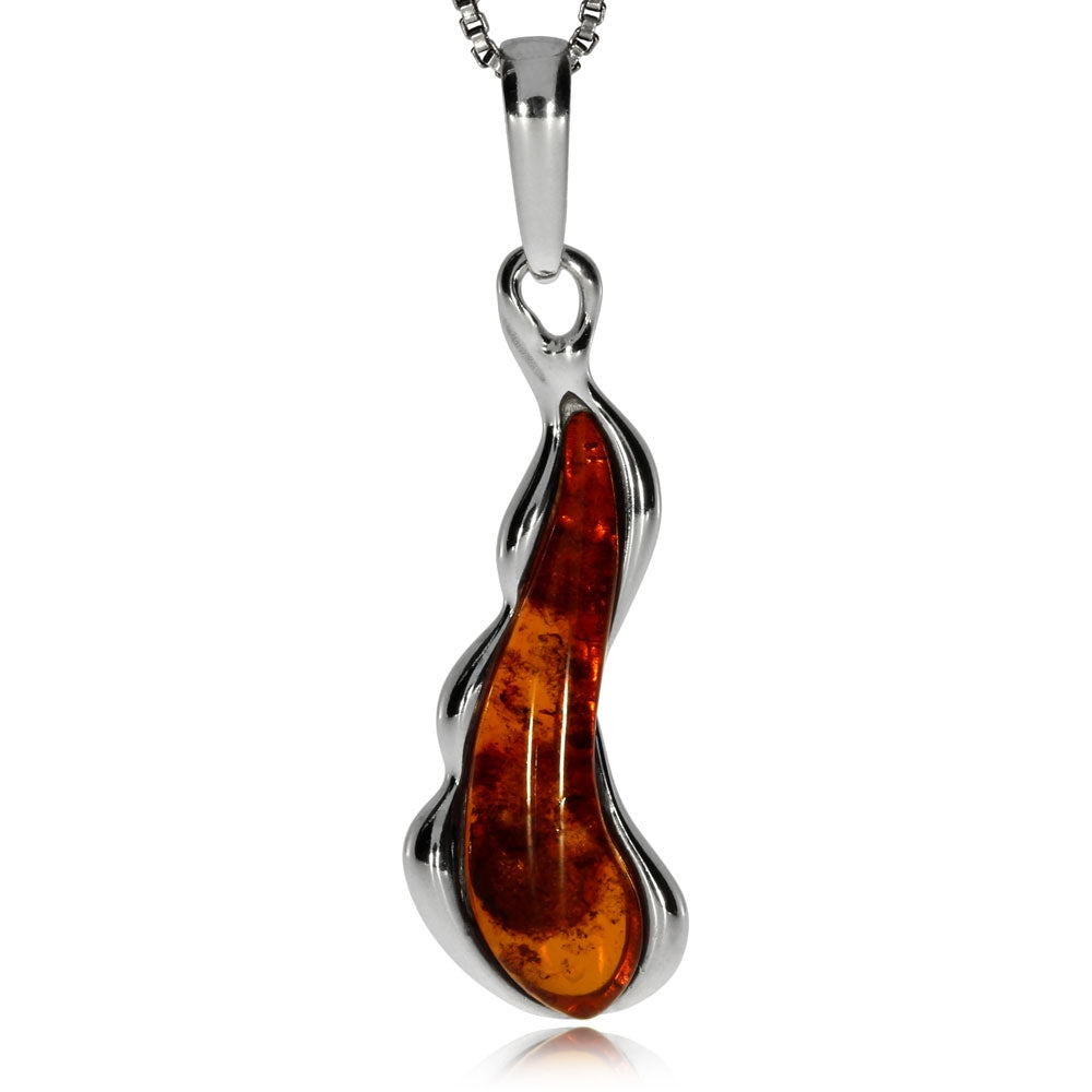 Stříbrný přívěsek s jantarem - zvlněná kapka