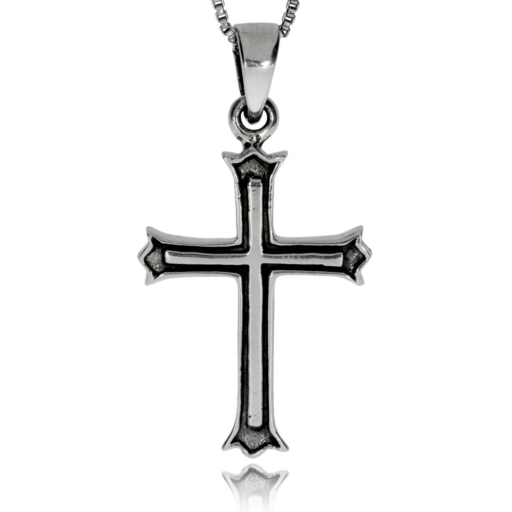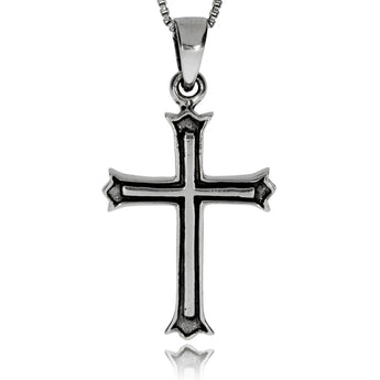 Originálně zpracovaný přívěsek vyrobený ve starostříbrné úpravě, který se hodí pro muže i ženy. Přívěsek představuje klasický křesťanský symbol kříže s ozdobně zakončenými konci břeven. Konec je rozdělený na tři části, tato symbolika odkazuje na trojjedinost, jednotu Otce, Syna a Ducha svatého.