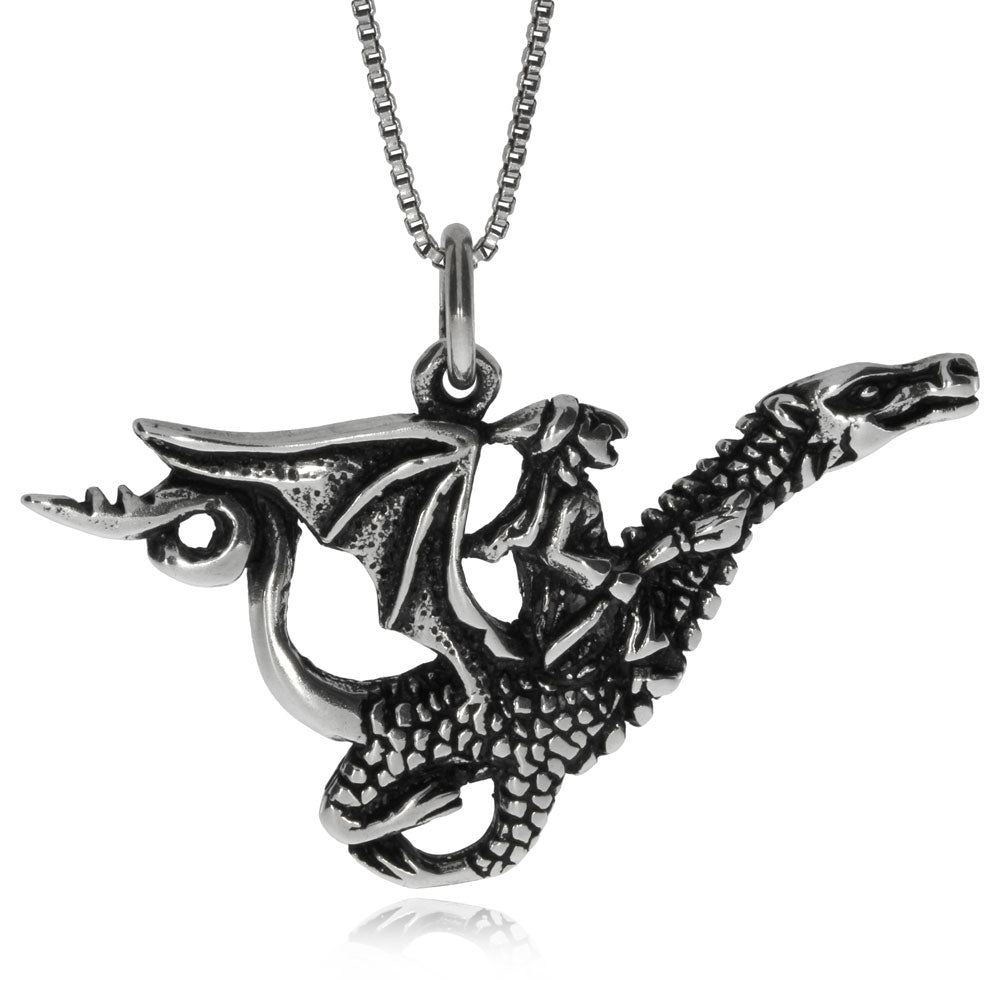 Drak je starodávný symbol, který se vyskytuje téměř ve všech kulturách. Představuje duchovní sílu, koncentraci a vytrvalost. Přívěsek je vyrobený ze stříbra se starostříbrnou povrchovou úpravou, ve které jsou skvěle znát jednotlivé detaily včetně dračí kůže.