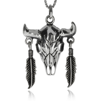 Originálně zpracovaný přívěsek s výraznou indiánskou symbolikou. Buvolí lebka představuje Velkého ducha. Přívěsek je vyrobený ze stříbra se starostříbrnou úpravou povrchu. Ta dává skvěle vyniknout jednotlivým detailům motivu.