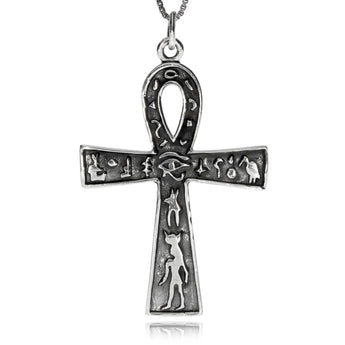 Originálně zpracovaný přívěsek s bohatou egyptskou symbolikou se svým jednoduchým a nadčasovým zpracováním hodí pro muže i ženy. Přívěsek ve tvaru nilského kříže zdobí egyptské hieroglyfy. Celý motiv potom doplňuje starostříbrá úprava povrchu.