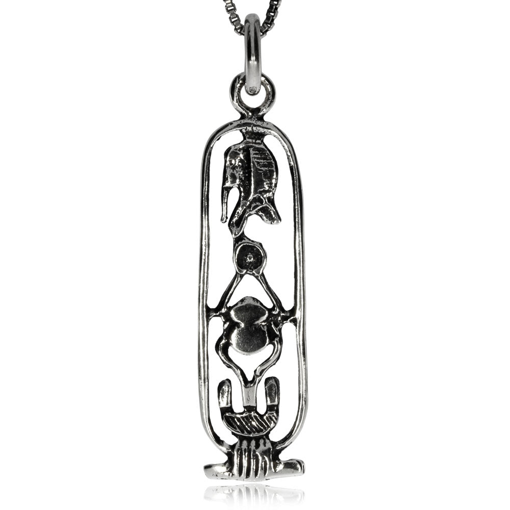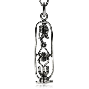 Velice zajímavý přívěsek vyobrazuje několik znaků pocházejících ze starobylého Egypta. Jednoduché podélné zpracování se hodí jak pro ženy, tak pro muže. Je vyrobený z kvalitního stříbra ve starostříbrné úpravě, která mu propůjčuje vzhled jako z dávných dob. Kdekomu by tak mohlo připadat, že snad přívěsek ukrývá tajuplnou minulost.